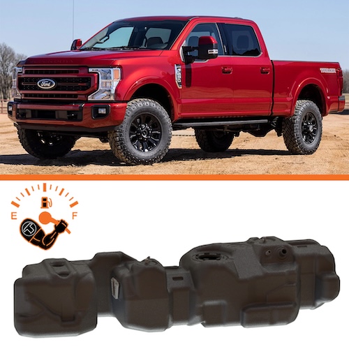We could advertise a larger capacity, but we chose to only market usable capacity to set honest and reasonable expectations for our customers. The Titan XXL tank also features minimal hang down below the bottom of the stock tank (approximately only 1 3/4" below factory skid plate). Installation is a breeze - no fabrication or cutting required. This tank is a direct fit, bolt-in application, making it the perfect upgrade for your Ford F250 or F350 pickup. Application For model year: 2017-2024. For F250 HD and F350 HD models with the Power Stroke engine. Note: For use with diesel fuel ONLY! Additional Details. The TITAN tank is 21 gallons larger at 55 gallons. The stock tank is only 34 gallons. Will not interfere with powered steps, air bag systems and most other accessories. Our mid-ship, direct replacement fuel tanks are designed to use your trucks stock/OE sending unit. However, our tanks are compatible with Fleece, AirDog, FASS, etc. This tank does NOT fit cab & chassis models. It is ONLY for use on trucks with traditional pick-up truck short beds.