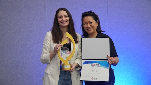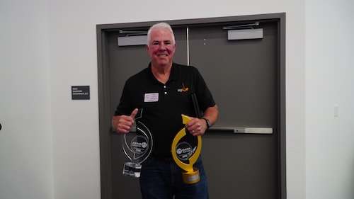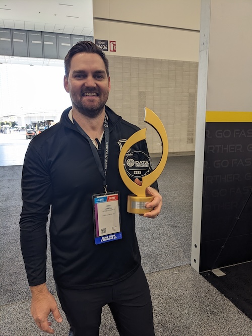 Tim holding Hushmat and ZyCoat Data Excellence Awards